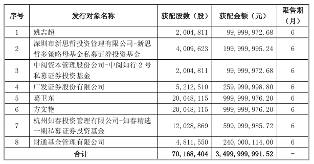 上证报中国证券网讯江淮汽车晚间披露定增发行情况报告书,公司向姚志超、葛卫东等8名投资者合计发行了7016.84万股股份,发行价格为49.88元/股,募集资金总额为约35亿元。其中,私募大佬葛卫东耗资约10亿元认购了2004.81万股。本次向特定对象发行股票完成后,发行对象所认购的股份自发行结束之日起六个月内不得转让。(岳洋合)