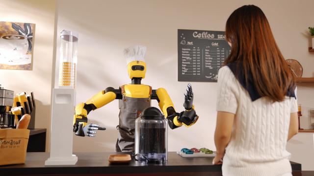 在商业服务场景中,跨维智能的人形机器人展示了超强技术力。在全球妇女峰会现场,DexForceW1Pro机器人自主完成咖啡制作全流程,从选取胶囊到操作咖啡机,整个过程如同熟练的咖啡师,甚至能在白天连续制作数百杯咖啡。这一表现证明了其在商业服务环境中稳定运行的能力。