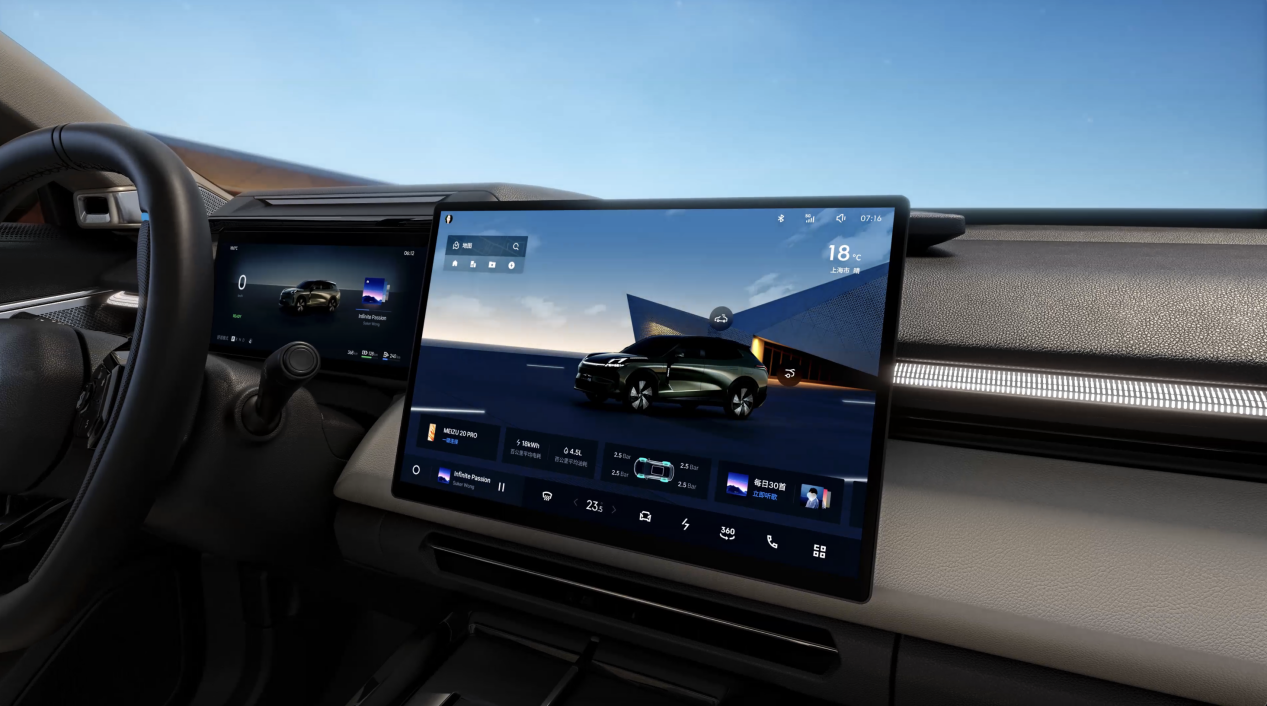 智能化层面,LYNK Flyme Auto系统搭载两颗国产自研7nm“龍鹰一号”芯片,算力媲美双高通8155,支持毫秒级响应与多任务处理。15.4英寸2.5K中控屏、12.3英寸全液晶仪表与92英寸AR-HUD实现“三屏联动”,FlymeLink让手机应用无缝流转至车机,四音区语音控制覆盖全场景交互。智能驾驶辅助支持L2级功能,涵盖NOA领航、遥控泊车等。