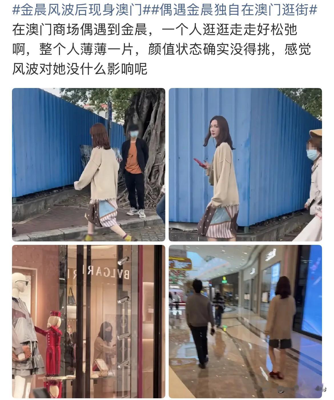 2月10日,金晨试水营业,效果明显 金晨没戴口罩街头商场闲逛,我是不太相信这个状态是路人偶遇的,毕竟金晨妆发齐全还没戴口罩,“路人”说是金晨一个人在逛,但看图金晨身边明显跟着工作人员! 金晨状态好是真的,她确实也没什么事,唯一担心受影响的就是下个月即将进入的新剧组,按道理说金晨短期不太适合露面,这次不放心试水,可能也是安抚新剧剧方,用这种方式证明自己没事,效果显著,她确实没什么事,大家对金晨态度平平,好感不多,反感也不多……对现在的金晨而言挺好的
