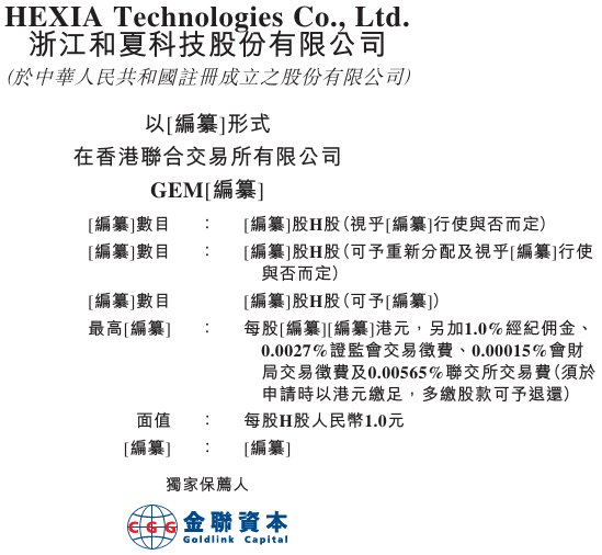 据港交所2月10日披露,浙江和夏科技股份有限公司(简称:和夏科技)向港交所创业板递交上市申请书,金联资本为其独家保荐人。