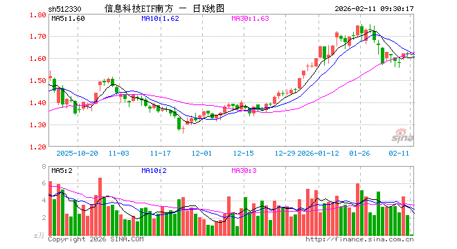 2月11日,信息科技ETF南方(512330)开盘涨0.00%,报1.617元。信息科技ETF南方(512330)重仓股方面,信维通信开盘涨0.01%,通富微电跌0.33%,长川科技跌0.16%,长盈精密跌0.99%,华虹公司跌0.14%,拓维信息跌0.31%,江波龙跌1.52%,协创数据跌1.33%,润和软件跌0.38%,佰维存储跌1.25%。