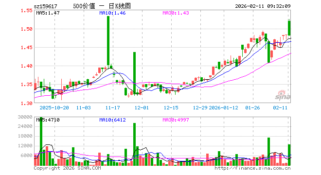 2月11日,中证500价值ETF华夏(159617)开盘涨2.49%,报1.520元。中证500价值ETF华夏(159617)重仓股方面,太阳纸业开盘涨0.36%,鄂尔多斯跌0.92%,桐昆股份涨0.00%,九州通跌0.19%,浙江龙盛跌1.18%,雅戈尔涨0.40%,梅花生物跌0.09%,韵达股份涨0.14%,长沙银行涨0.00%,白云山跌0.08%。