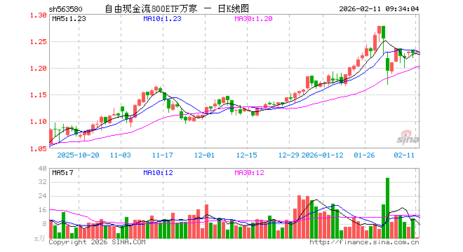自由现金流800ETF万家(563580)业绩比较基准为中证800自由现金流指数收益率,管理人为万家基金管理有限公司,基金经理为贺方舟,成立(2025-07-16)以来回报为22.89%,近一个月回报为4.85%。