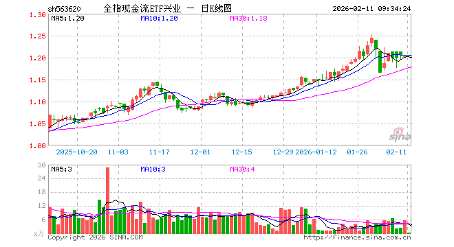 全指现金流ETF兴业(563620)业绩比较基准为中证全指自由现金流指数收益率,管理人为兴业基金管理有限公司,基金经理为张诗悦、徐成城,成立(2025-08-06)以来回报为20.37%,近一个月回报为4.92%。