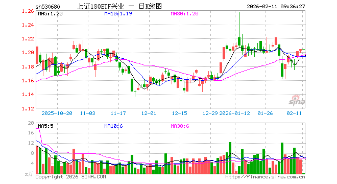 2月11日,上证180ETF兴业(530680)开盘涨0.00%,报1.204元。上证180ETF兴业(530680)重仓股方面,贵州茅台开盘涨0.00%,紫金矿业跌0.54%,中国平安涨0.09%,恒瑞医药涨0.00%,寒武纪跌1.09%,药明康德涨0.50%,招商银行涨0.05%,长江电力涨0.04%,工业富联跌0.84%,中芯国际跌1.89%。