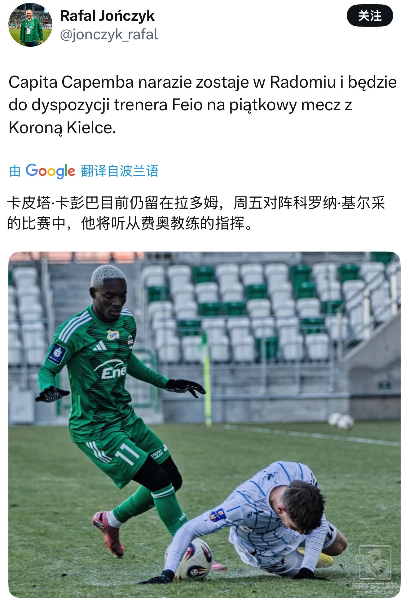 大连英博大连英博中超联赛 关于卡皮塔的两则外媒消息,一则是球员即将前往美职联,以200万美元的转会费加盟堪萨斯城体育。还有一则是球员仍在拉多米亚克,周末将继续代表球队出战。 大连