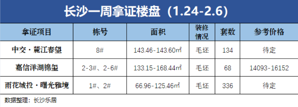 嘉信洋湖锦玺(岳麓区)同样获2张证,推出133.15-168.44㎡毛坯房源,新增68套改善型住宅;