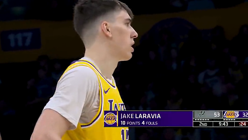 拉拉维亚拿到湖人全队最高10分,但第二节刚开局已经身背4犯