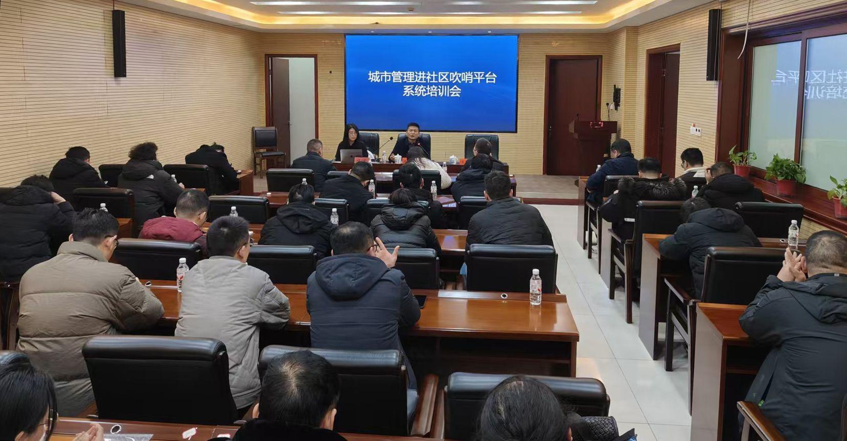 当天,市城市管理进社区工作专班组织市区10个试点社区、街道、区级专班及三区有关部门、市级专班及市直有关部门开展线上吹哨平台的业务培训。吹哨线上平台开发单位技术人员进行授课。技术人员围绕城市管理进社区哨件流程、市民上报小程序端、PC端系统操作、哨件统计查询系统、智慧城管APP等内容,针对市级、区级、社区三级的研判、处置、反馈、评价环节,以及操作过程中的常见问题与步骤进行系统讲解,并指出了操作中需注意的事项。