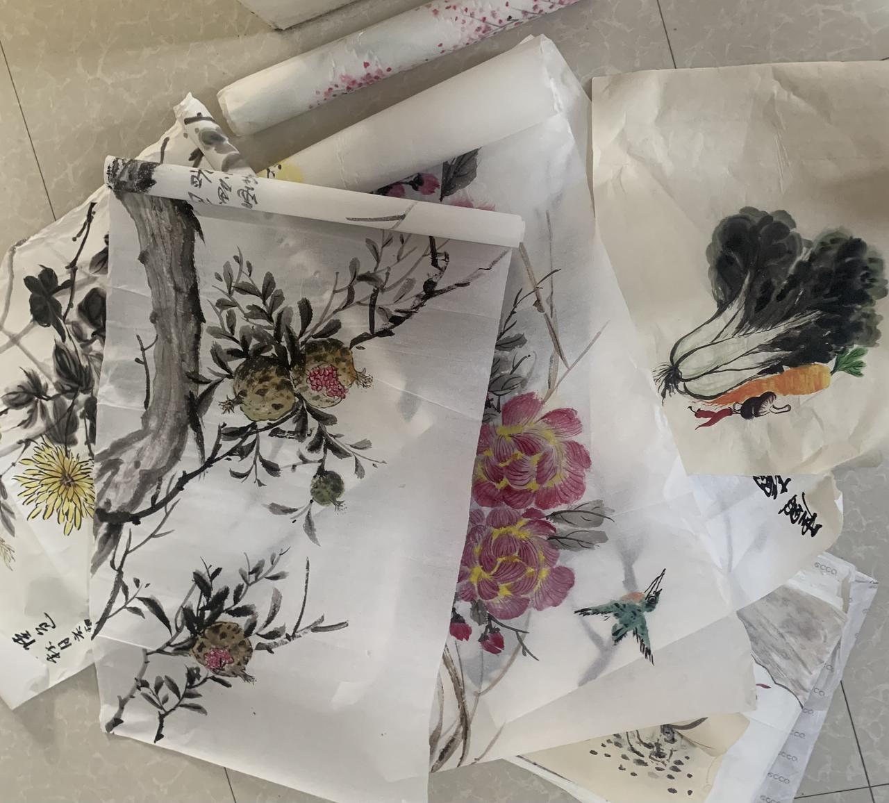 今天大扫除,翻出来一些当时不舍得扔掉的,在衣橱顶上放了两年了,练了两年书法和国画