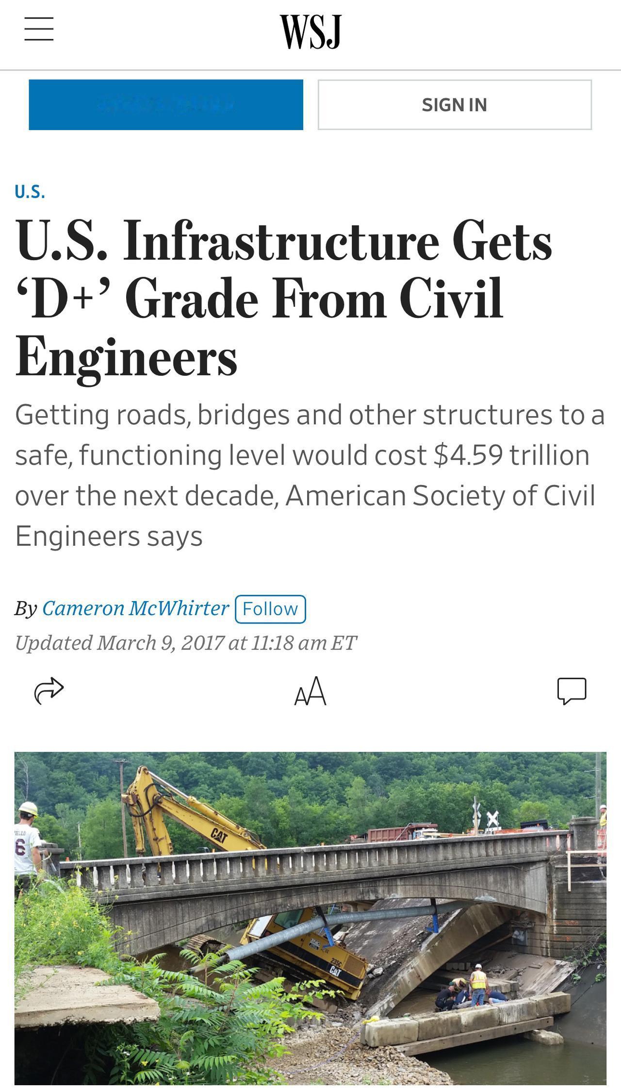 【观世界】【美国基础设施被土木工程师评为“D+”级⋯⋯】 但政客们说他们最环保