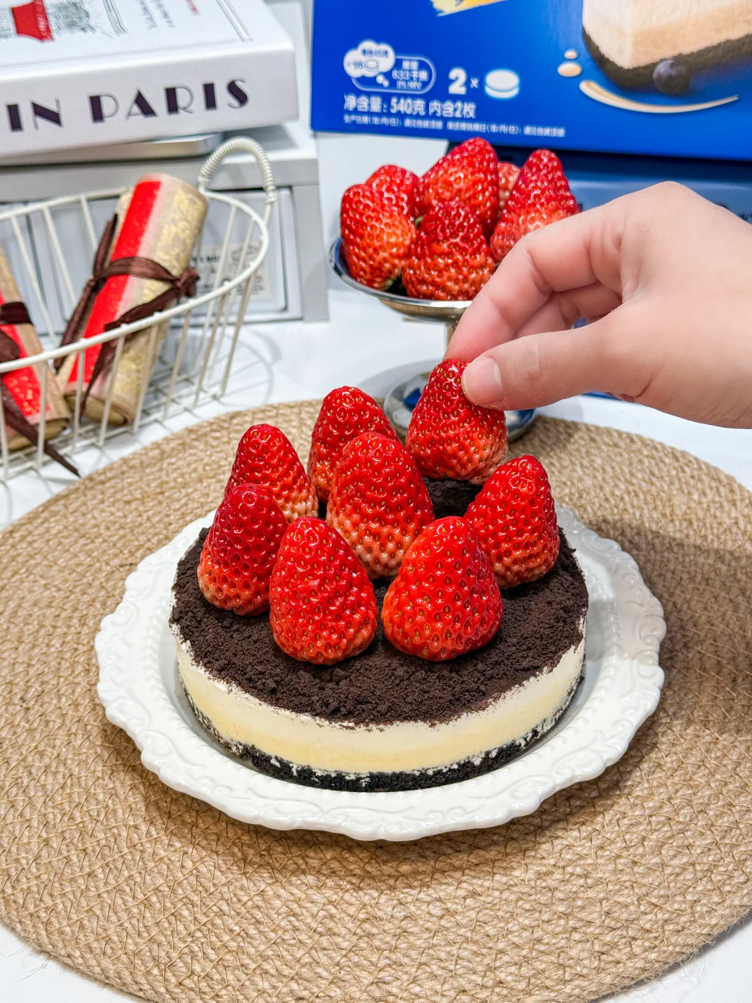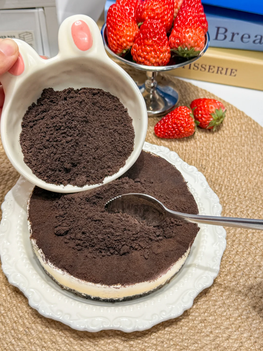点缀一层奥利奥碎,铺满草莓🍓