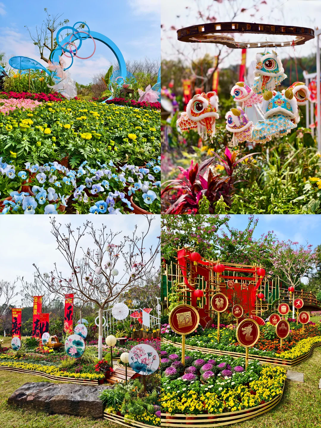 ✅百花园:新春主题园艺展,马年生肖等元素,广府年味的小品景观,一步一景