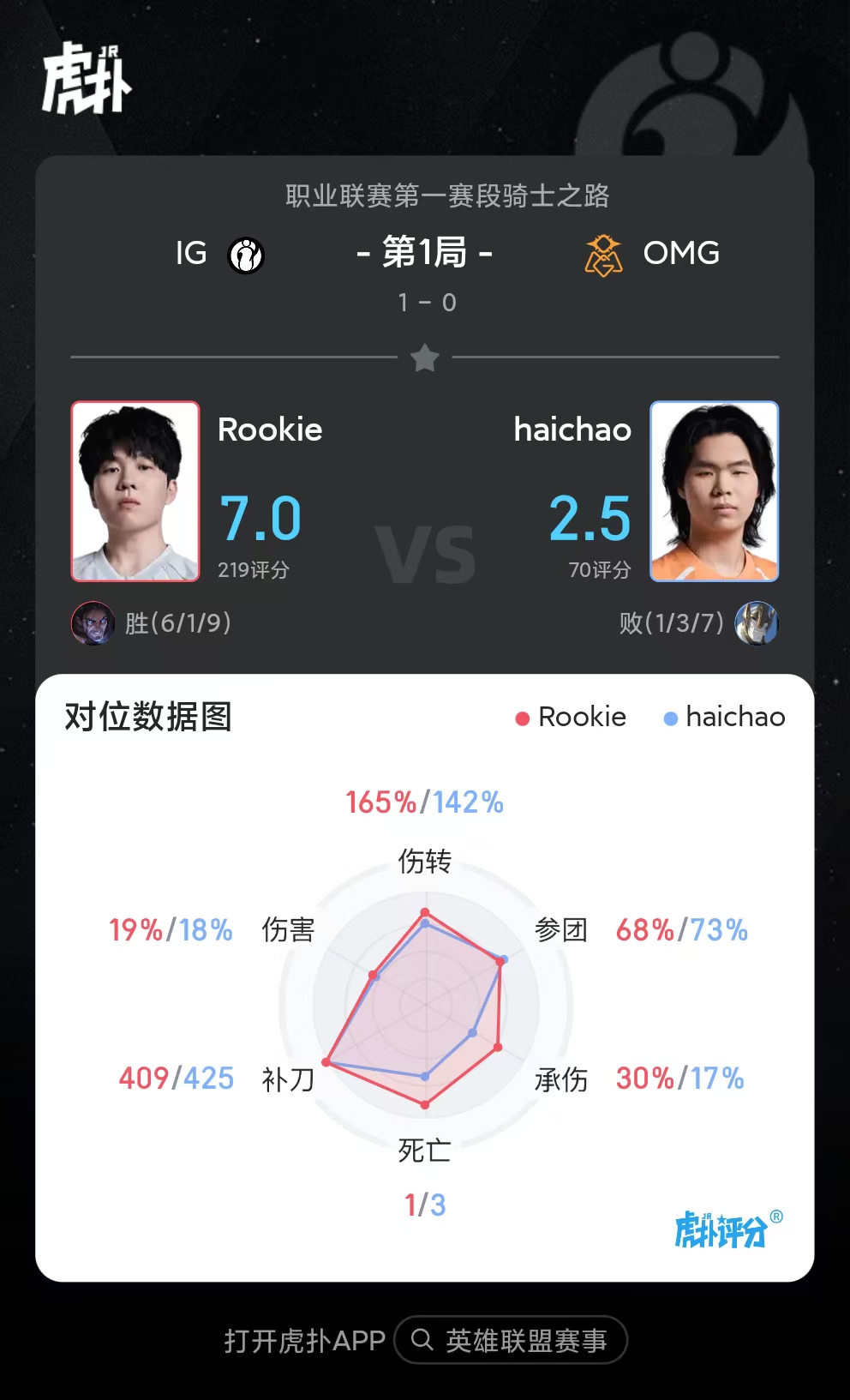 虎扑02月11日讯Rookie塞拉斯打出6/1/9战绩,拿到IG对阵OMG首局比赛MVP