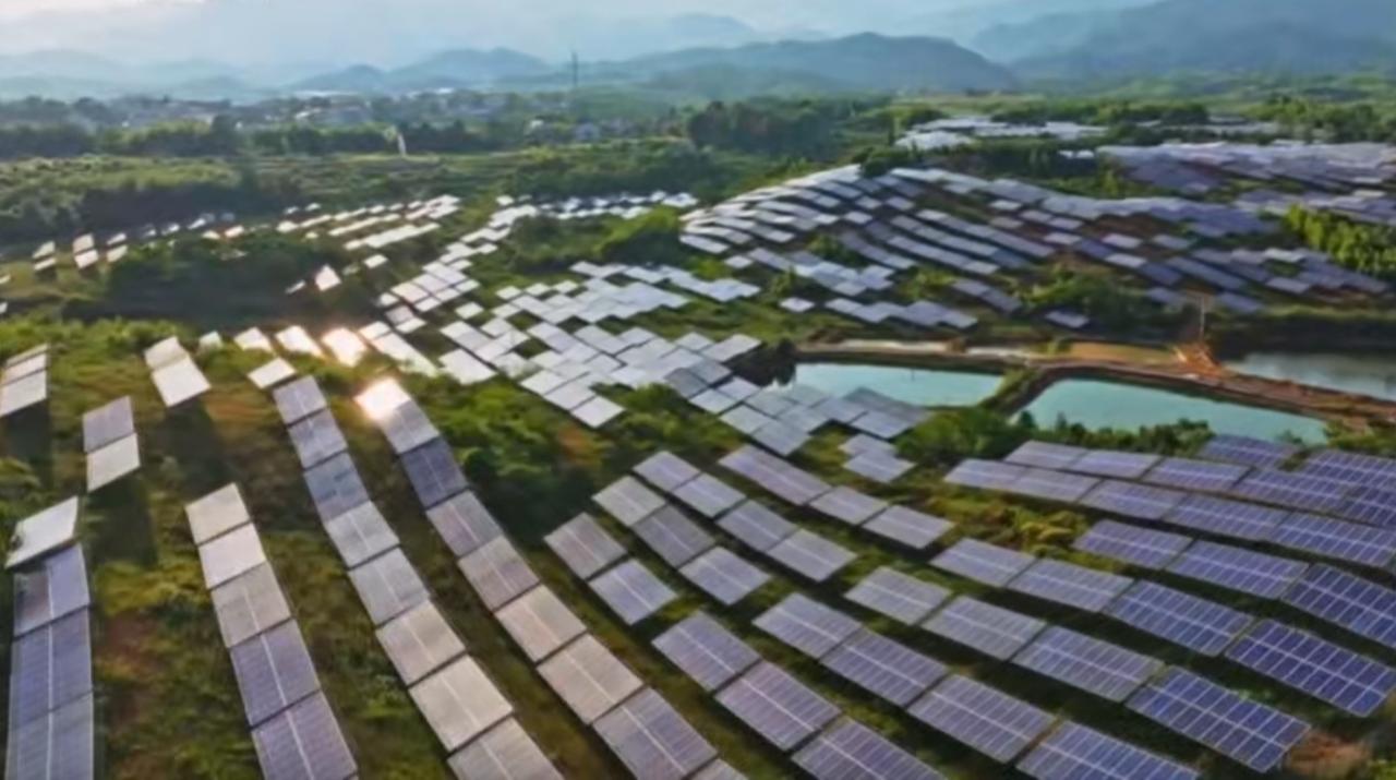 在碧波之上与青山之间,蓝色的光伏板如巨大的能量矩阵铺陈开来。工作人员划着小船穿梭其间,精心维护着这些“阳光捕手”。它们不仅将清洁的电能源源不断地输送到千家万户,更让曾经闲置的水面与山地焕发出勃勃生机。这是人与自然和谐共生的生动实践,也是中国迈向“双碳”目标的坚实步伐。