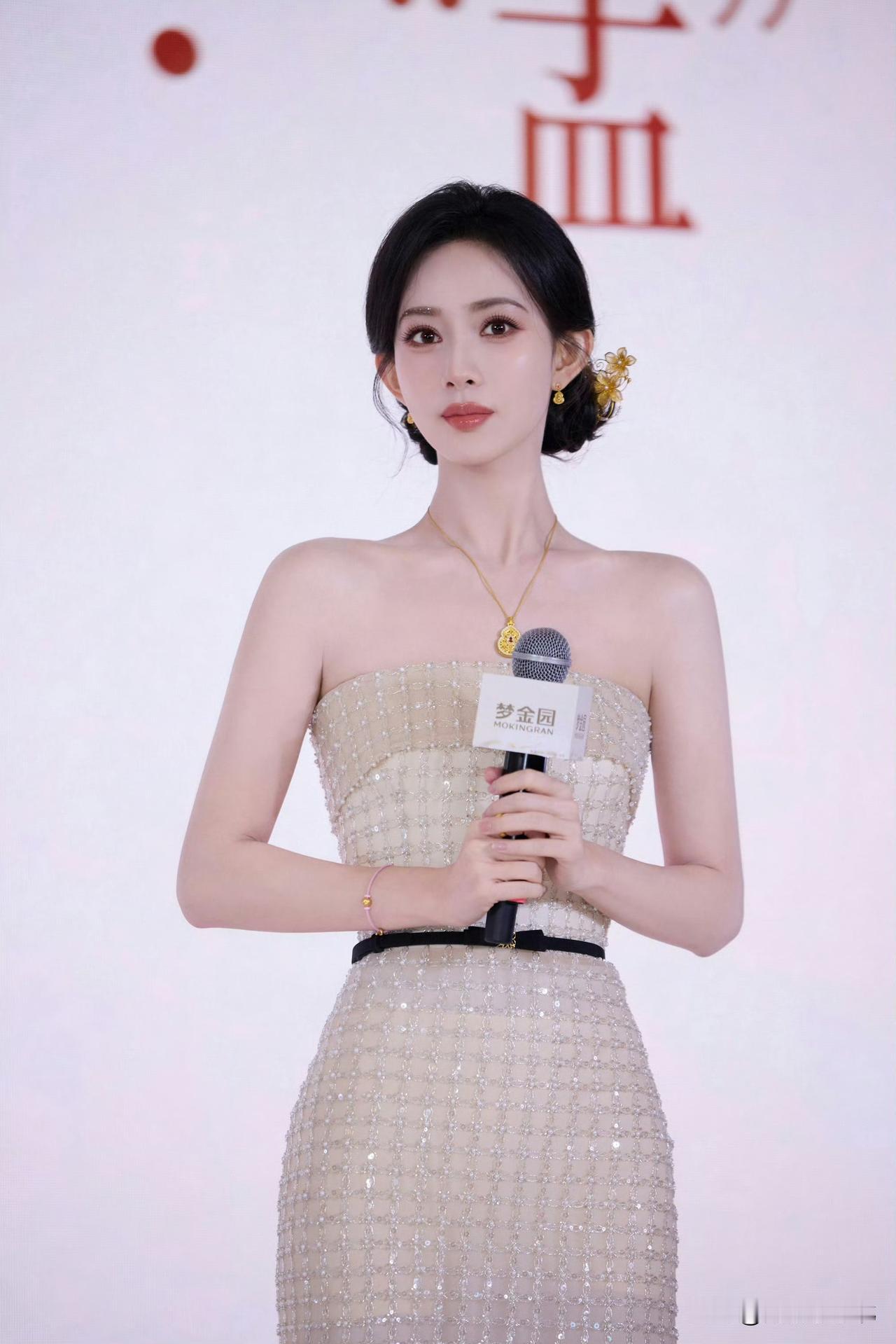 内娱资讯,孟子近日身着Elie Saab 2026早春度假系列抹胸礼服出席了梦金园品牌的宣传活动。