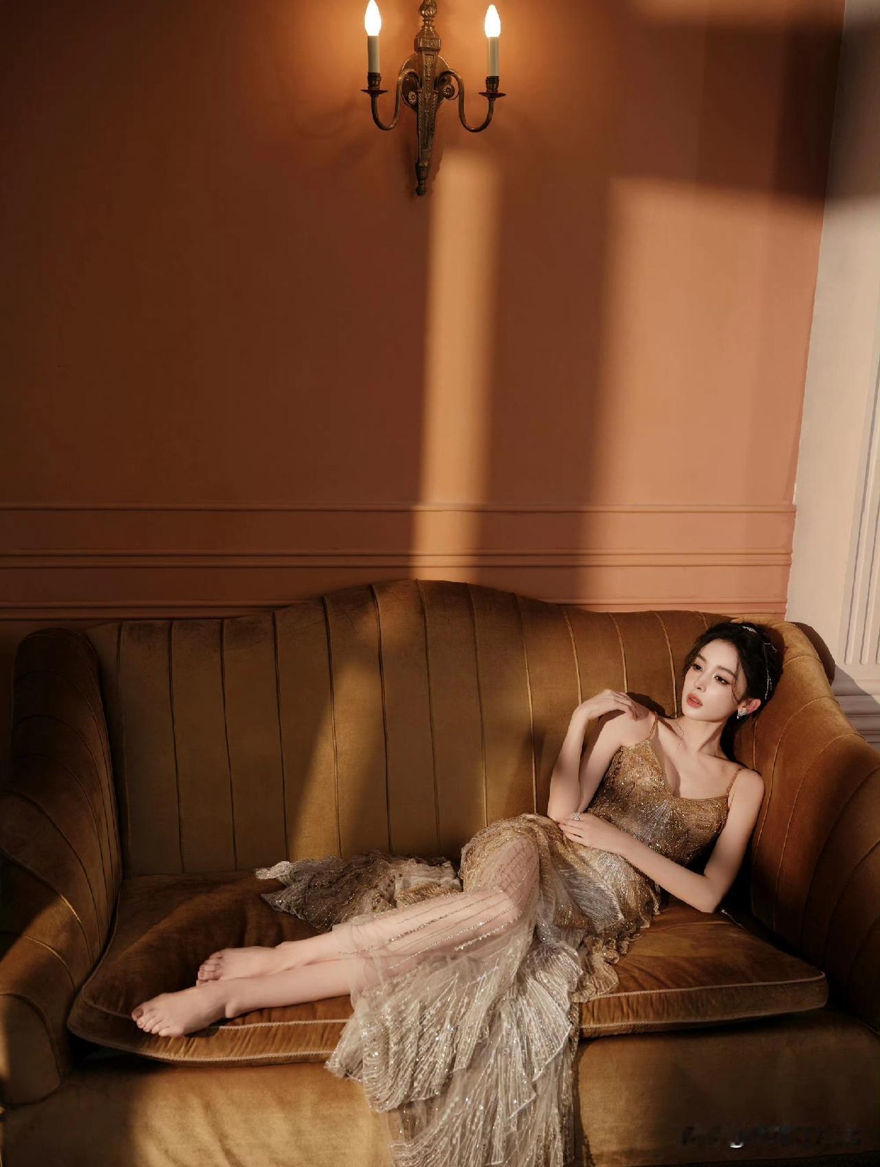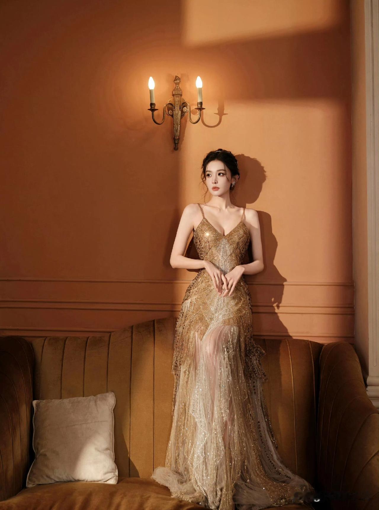 被古力娜扎美晕!鎏金吊带裙勾勒完美曲线,姐姐鲨疯了!古力娜扎明星造型时尚写真