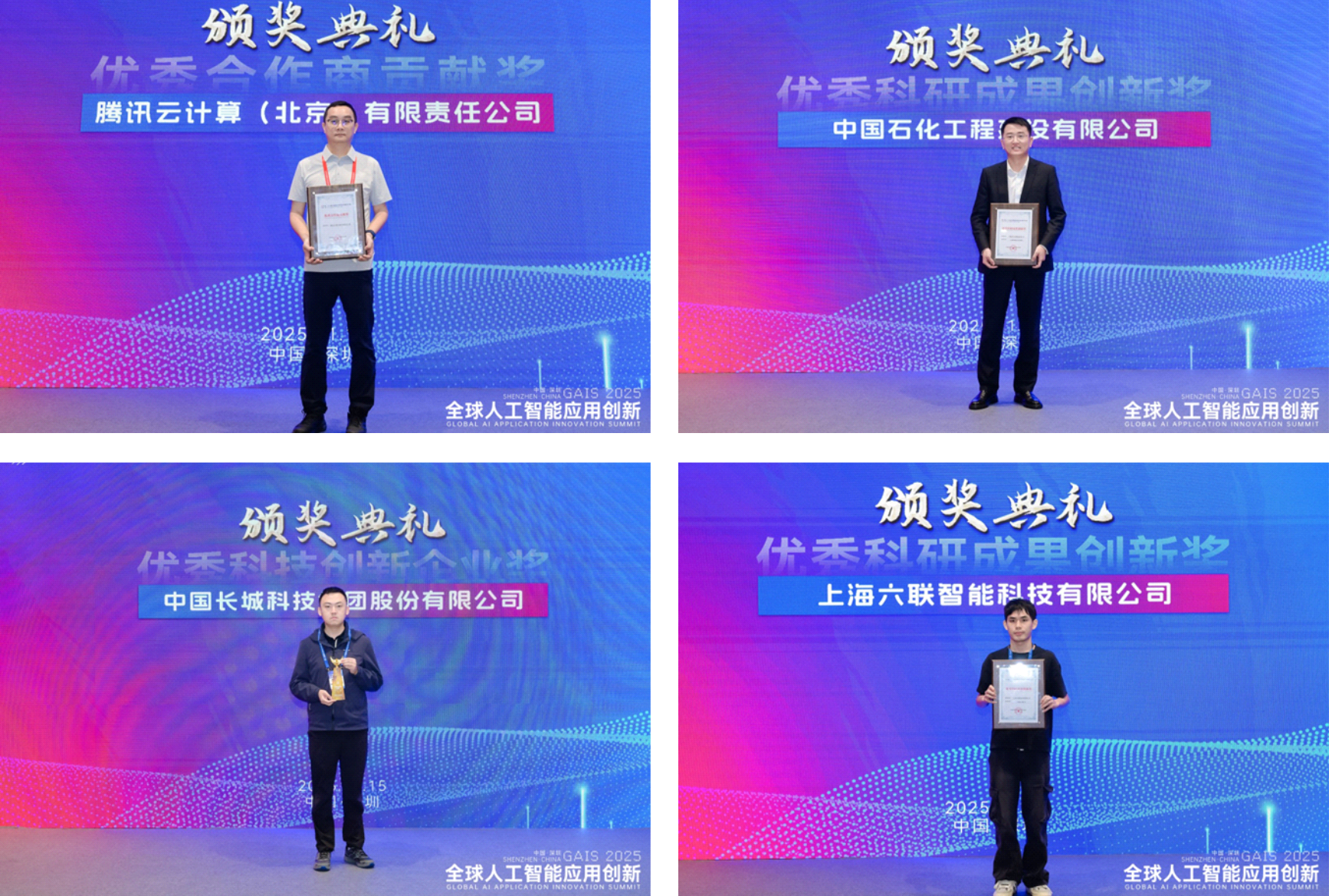 会议期间,第27届中国国际高新技术成果交易会颁奖典礼盛大举行。对在人工智能领域作出杰出贡献的企业、科研机构和合作伙伴进行了表彰。腾讯云计算(北京)有限责任公司荣获“2025高交会优秀合作商贡献奖”,中国石化工程建设有限公司、奇安信科技集团股份有限公司等多家单位获得“2025高交会优秀科研成果创新奖”,腾讯云计算(北京)有限责任公司、中国长城科技集团股份有限公司等企业则荣获“2025高交会优秀科技创新企业奖”。