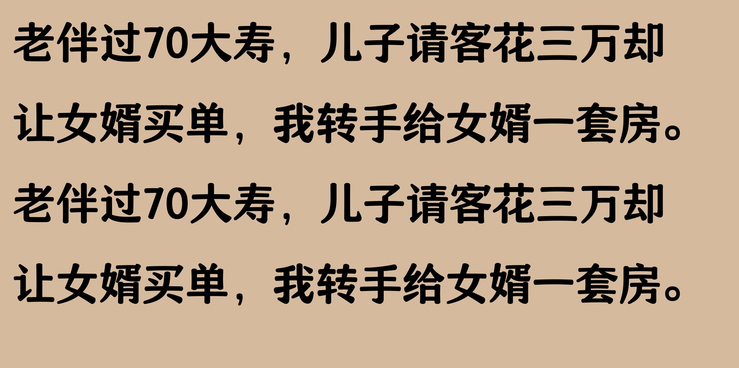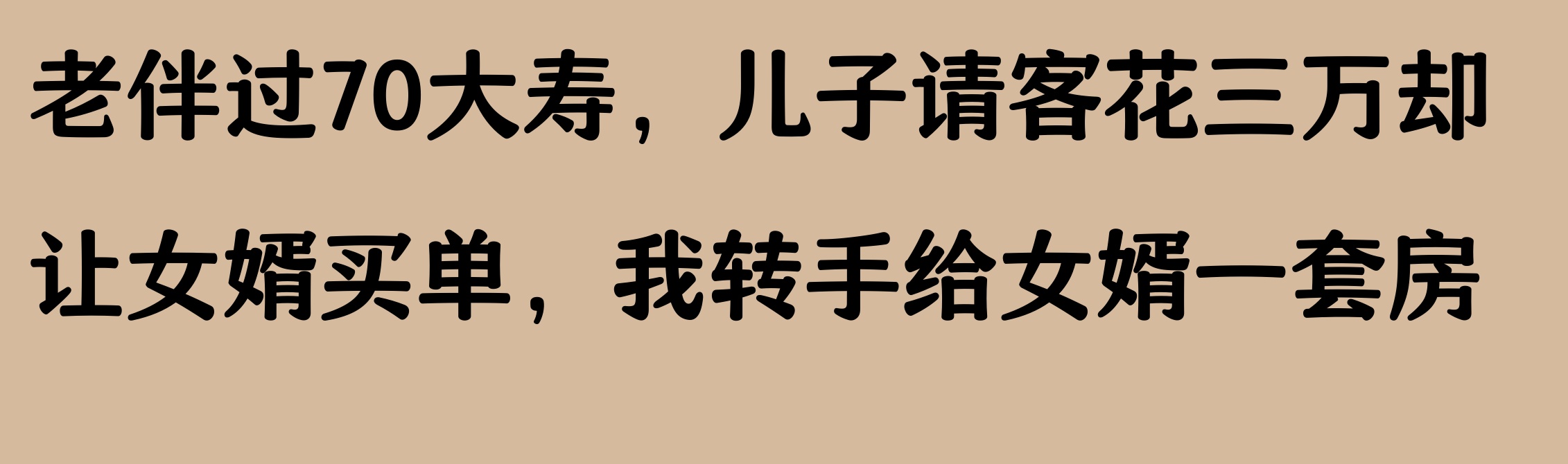 我老伴70大寿,儿子请客花三万却让女婿买单,我转手给女婿一套房,唉,造孽哦。