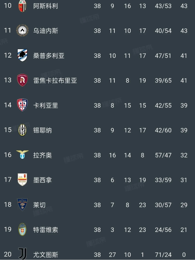 看看意甲电话门是怎么处罚的,比中超力度大10倍: 1,尤文图斯:剥夺两个赛季的意甲冠军,降级。下赛季意乙扣9分,罚款12万欧元,取消3个主场资格。 2,AC米兰:当赛季意甲扣30分,下赛季意甲扣8分,欧冠直通资格降为欧冠资格赛。取消1个主场资格,罚款10万欧元。 3,佛罗伦萨:下赛季意甲扣15分。 4,拉齐奥:下赛季意甲扣3分,取消欧战资格。 尤文图斯、AC米兰、佛罗伦萨遭遇的处罚,都远高于此次被罚最重的申花和泰达。 尤文图斯被取消了两个冠军+降级+扣9分,米兰被扣30分,佛罗伦萨被扣15分,这才是真正有态度的处罚。 电话门已经过去20年了,意甲再也没有假球出现。