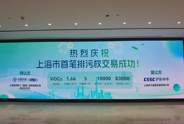 受让方上海长兴金属处理有限公司是沪东中华造船集团船舶配套设备有限公司控股子公司,拿到8.3吨挥发性有机物排污权,解了高速发展过程中的燃眉之急。