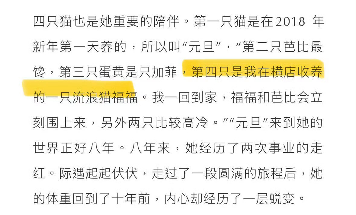 彭小苒曾在横店收养流浪猫 彭小苒养了四只猫,其中“福福”是在横店收养的流浪小猫。用温柔守护小生命,好治愈~