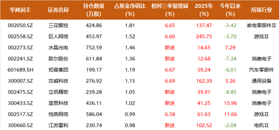 到2025年四季度,三花智控已经成为华商润丰和华商元亨的第一大重仓。