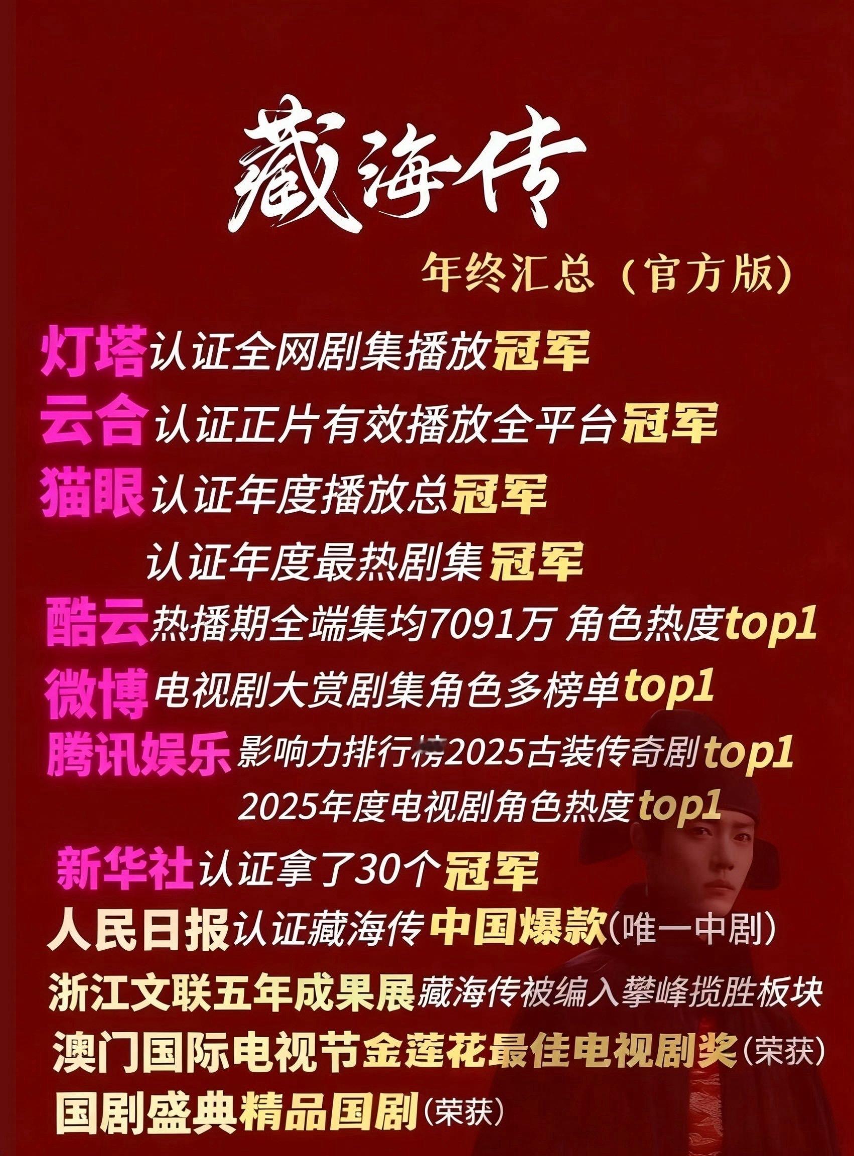 藏海传入选广电视听年鉴2025广电年鉴 肖战《藏海传》入选2025年广电年鉴:不愧是2025年度剧王👑唯一火爆全球的现象级爆剧!台网口碑三爆🔥创下多项纪录👍🏻唯一破30亿播放量的剧集!国剧之光/文化标杆!肖战精湛的演技➕同期声台词 全网好评如潮肖战粉丝已经在合肥吃上了
