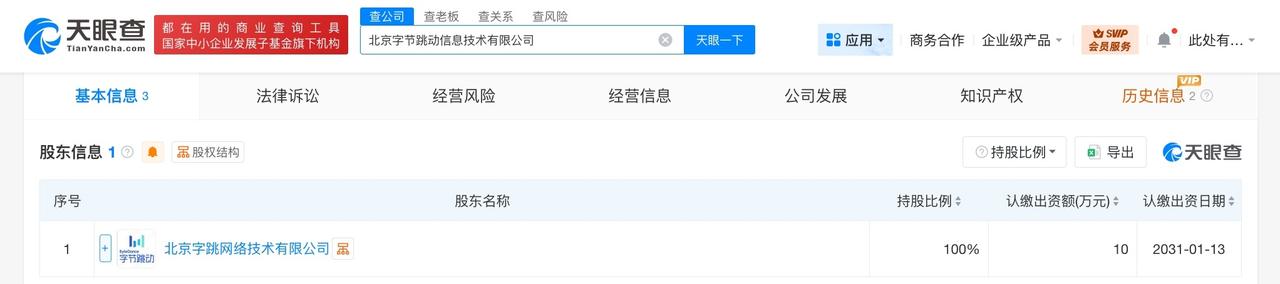 字节跳动在北京成立信息技术公司 天眼查App显示,近日,北京字节跳动信息技术有限公司成立,法定代表人为钟伟,注册资本10万人民币,经营范围含技术服务、技术开发、技术咨询、技术交流、技术转让、技术推广,信息技术咨询服务,软件开发。股东信息显示,该公司由北京字跳网络技术有限公司全资持股。 天眼查信息: