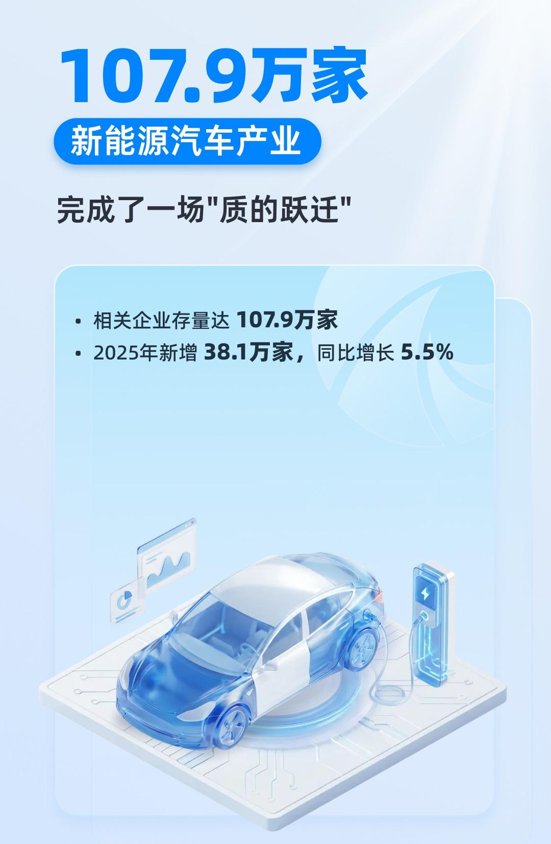 安徽新能源汽车产量出口量均全国第一 安徽新能源汽车第一省 近日,央视财经与天眼查联合发布的《企业活力大数据》显示,我国新能源汽车产业已迈入高质量发展新阶段。 截至2025年,全国新能源汽车相关企业注册总量已达107.9万家,2025年全年新增企业38.1万家,同比增长5.5%,产业生态持续繁荣。经过多年发展,该产业已实现从规模扩张向技术突破、品牌升级的“质的跃迁”,在动力电池、智能驾驶、整车制造等领域形成了全球领先的产业竞争力。 值得一提的是,安徽省作为我国新能源汽车产业的重要集聚区,表现尤为突出。 国家统计局数据显示,2025年安徽省汽车产量达368.65万辆,其中新能源汽车产量179.41万辆,双双位居全国首位。同时,安徽也是全国首个汽车年出口突破百万辆的省份,2025年出口汽车(含底盘)122.8万辆,出口量稳居全国第一,同比增长28.7%,展现出强大的国际竞争力。 天眼查数据显示,安徽省现存汽车相关企业超47万家。从成立时间看,安徽省汽车相关企业集中成立于1至5年之间,占比超40%。新能源汽车产业正持续领跑绿色智造新赛道,成为支撑中国经济稳健增长的核心引擎之一。