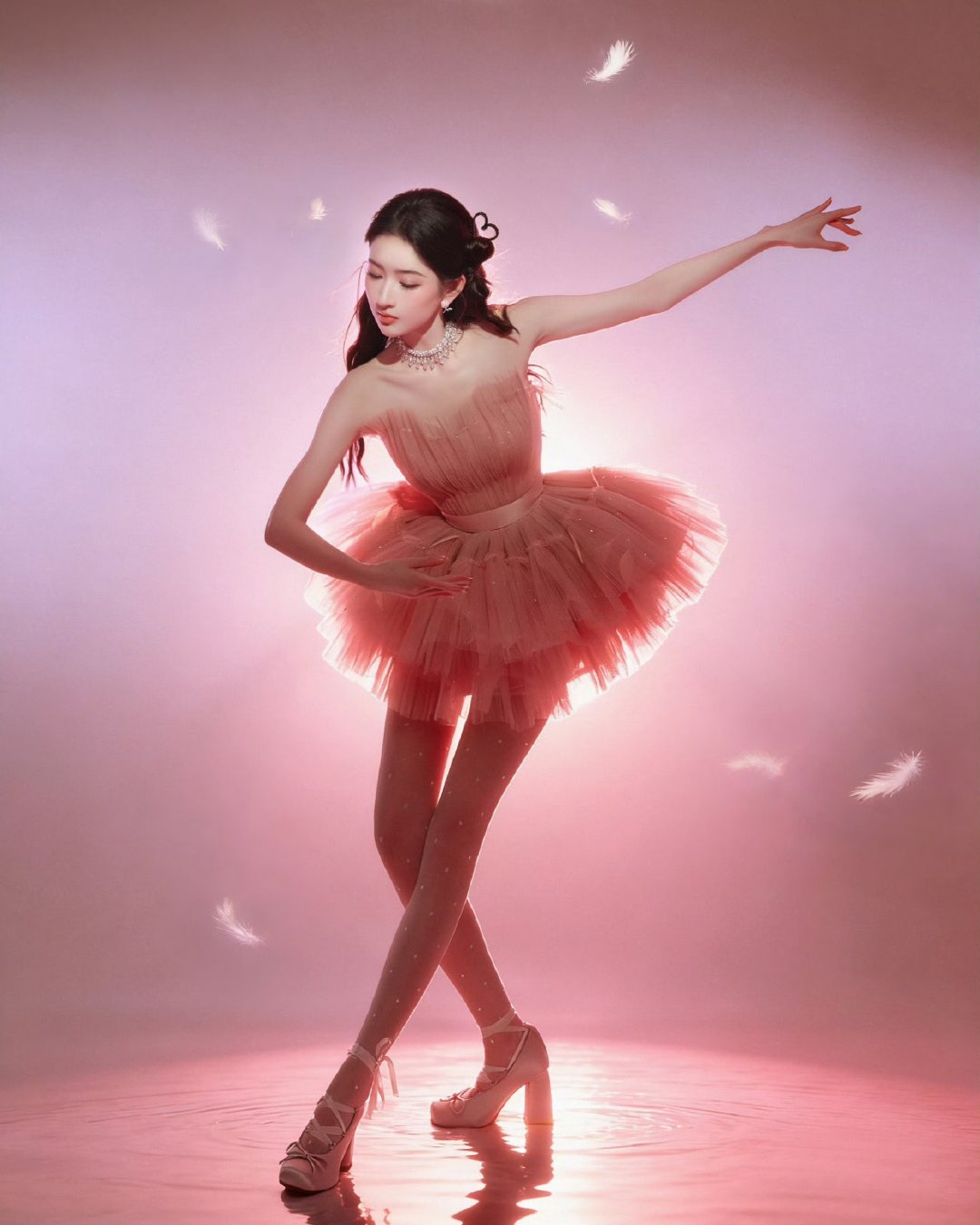 王玉雯粉色抹胸蓬蓬裙王玉雯粉天鹅 王玉雯粉天鹅,好美呀