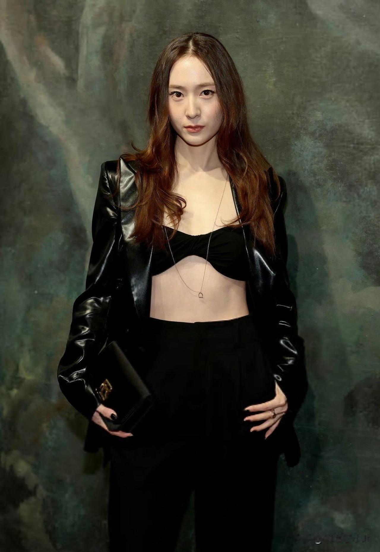 韩娱资讯,郑秀晶身穿“RalphLauren 2026春夏皮衣抹胸系列”时装亮相