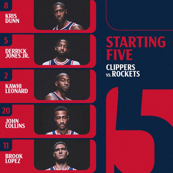 快船首发:小琼斯、邓恩、伦纳德、科林斯、洛佩斯
