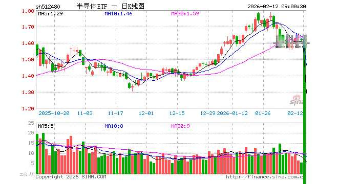 2月11日,半导体ETF(512480)跌1.16%,成交额8.72亿元。当日份额增加1.02亿份,最新份额为138.21亿份,近20个交易日份额增加12.34亿份。最新资产净值计算值为223.31亿元。