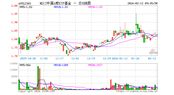 MSCI中国A股ETF基金(512360)业绩比较基准为MSCI中国A股国际指数(MSCIChinaAInternationalIndex)收益率,管理人为平安基金管理有限公司,基金经理为李严,成立(2018-06-15)以来回报为83.46%,近一个月回报为-0.43%。