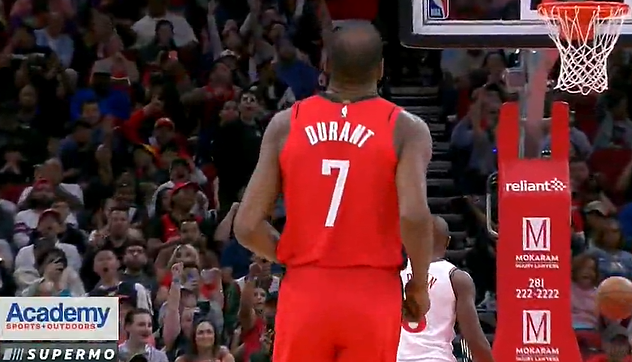 杜兰特高难度压哨三分拔进,卡佩拉防守端连送两记盖帽