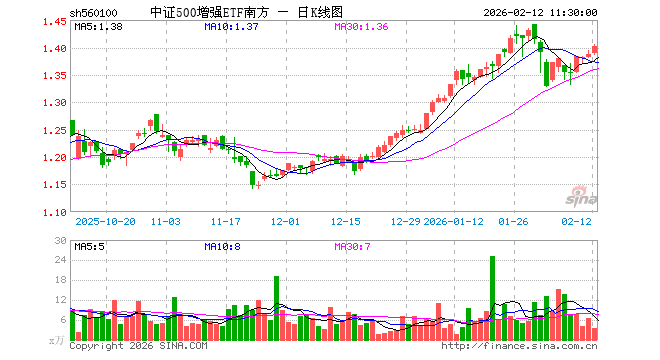 2月12日,截止午间收盘,中证500增强ETF南方(560100)涨0.94%,报1.401元,成交额504.34万元。中证500增强ETF南方(560100)重仓股方面,巨人网络截止午盘跌1.03%,天山铝业跌0.88%,中矿资源涨1.27%,金发科技涨0.80%,先导智能跌0.05%,西部矿业涨2.69%,中国卫星跌1.65%,豪迈科技涨1.57%,金风科技跌0.43%,兴森科技涨4.05%。