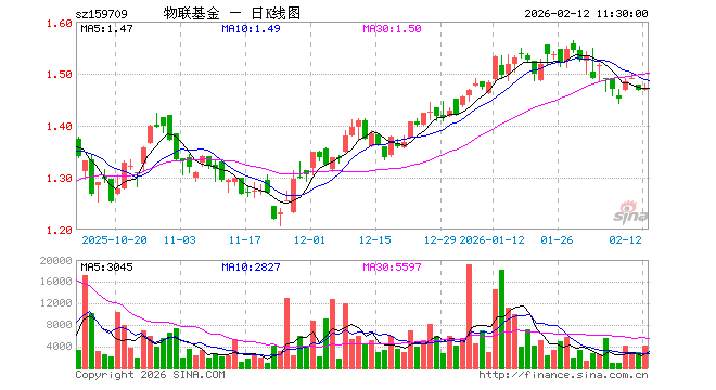 2月12日,截止午间收盘,物联网ETF工银(159709)涨0.20%,报1.471元,成交额62.41万元。物联网ETF工银(159709)重仓股方面,中际旭创截止午盘跌0.17%,新易盛跌0.31%,美的集团涨0.08%,北方华创跌0.59%,汇川技术涨0.21%,中兴通讯涨0.24%,海康威视涨0.62%,科大讯飞涨1.29%,歌尔股份涨0.00%,华工科技涨2.06%。