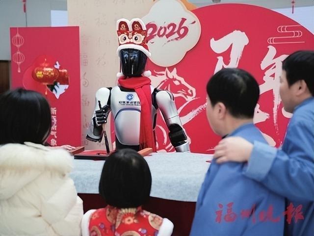 “没想到银行也这么有新春氛围,还有机器人写春联,墨香一蘸,年味儿就来了!”近日,在建行福州城北支行举办的“墨香迎春·福至万家”活动现场,市民刘女士笑着展示手中的“福”字春联。