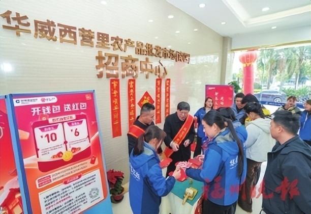 临近年关,备年货成了百姓的头等大事。位于海峡奥体商圈的华威西营里农产品批发市场(南区)汇聚厨具酒店用品、果蔬批发等多业态,涌动着节前供销两旺的活力。当前,果蔬批发区更是火热,凭借全品类果品供应与24小时营业服务吸引众多商户进驻,满足市民多元采购需求。建行福建省分行将“普惠快车”开进摊点一线,主动对接备战“春节档”的商户,提供融资对接、聚合支付、数币办理等“普惠大礼包”,推广服务业贷款贴息政策,以金融“暖流”浸润市场“满池春水”。
