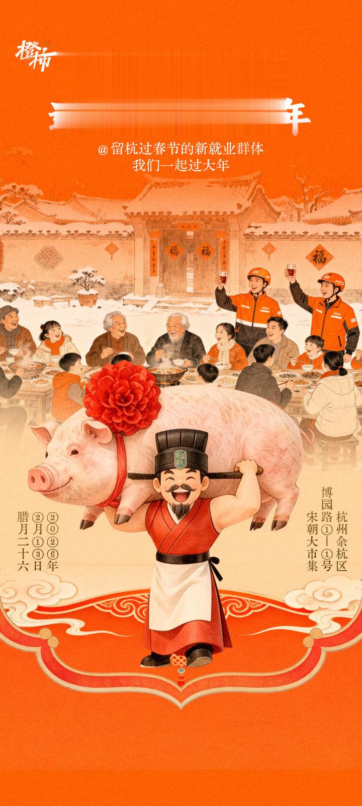 此前,杭州市委社会工作部联合都市快报社、宋朝大市集发起“一起提前过大年”的招募,邀请杭州市民、新就业群体代表共赴宋朝大市集,吃“团圆家宴”。