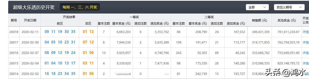 昨天开奖的大乐透,一等奖中出7注基本奖,6注追加,单注追加一等奖奖金高达1200万,单纯从一等奖的中奖金额上来说,相较于双色球的一等奖还是有较大的奖金优势的。 而且,因为是春节前的最后一期,所以,该期的全国3.49亿的总销量创下新规之后的最高销售记录,在新规之前也有接近的销售量,一般都是周六开奖当期的销售量相对较高一些,因为销售时间比平时多了一天。 由此可以推算,今晚开奖的双色球全国销售量也有望创下新规之后的一个最高销售记录。尤其是福运奖和六等奖等固定小奖的爆奖率接二连三,对于绝大多数普通彩民来说,他们是既希望小奖爆奖,可以在没有中大奖的前提下中点小奖回本,另一方面也不希望过度爆奖,因为会严重拉低浮动奖,也就是一二等奖的中奖金额。在双色球这种玩法中,这种现象体现得异常明显。 鸿水说