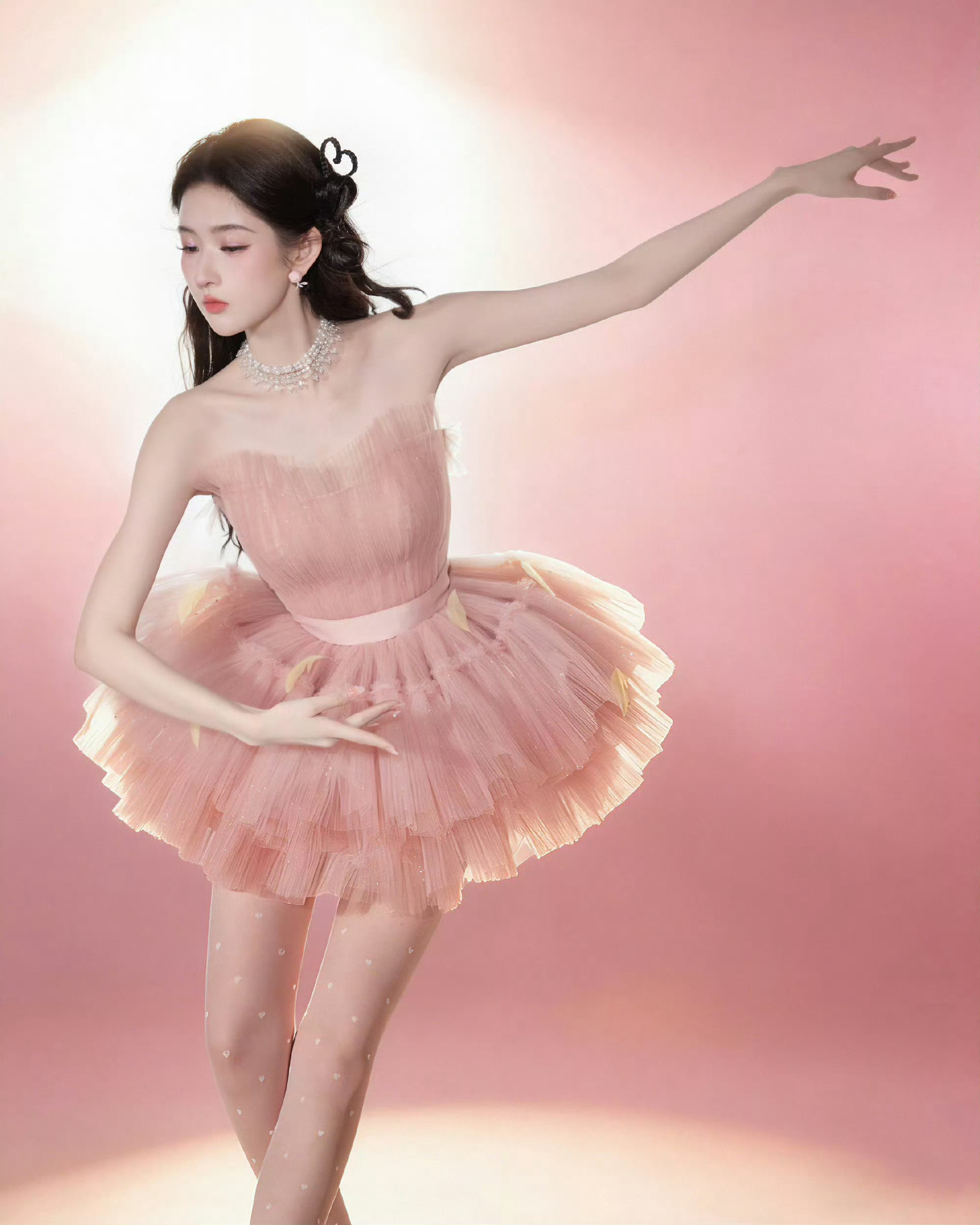 王玉雯粉天鹅 粉色蓬蓬裙勾勒温柔少女感,化身灵动粉天鹅,好美呀!