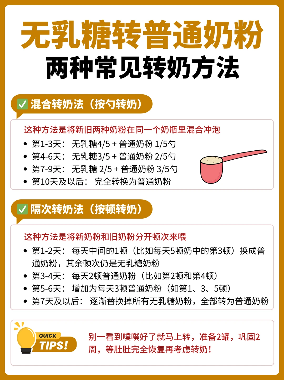 换季遇上宝宝噗噗,像开了小水闸,一天十多次,完全受不住!宝宝难受我也崩溃。排除了辅食的原因,家里卫生也做了大消杀,但是还是止不住,宝宝也越来越蔫! 跑了几趟医院,💩验了几次才知道,轮状🦠在搞事情! 原来,在换季或转奶期间,宝宝很容易因为🦠入侵中招,出现急性噗噗,持续久了可能出现肚肚内部受损,导致乳糖酶活性下降,没有办法高效分解乳糖,从而引发继发性乳糖不耐受。这时候再喝含乳糖的奶粉,反而会加重肚肚的负担。如果家长们只是按照自己的判断,排除辅食啊、卫生啊,而不是从根源上介入,就容易恶性循环,让宝宝长时间受苦! . 📢妈妈们需要注意,如果宝宝噗噗不止: ✅及时就医,查清楚原因 ✅立即转成无乳糖奶粉 ✅正确补液防脱水 ✅添加辅食的宝宝,不要轻易禁食 ✅仔细护理屁屁 . 经过深入了解,我们选了雀巢他们家的,它对宝宝噗噗状况特别友好,帮助减轻分解乳糖的负担,特别适合目前这个情况! 虽然是无乳糖奶粉,但是它添加了核苷酸、锌和维生素A,帮助一起呵护肚肚内部。在营养配方上丝毫不马虎,钙、铁、维生素D一个不落下。6:4配比的乳清蛋白和酪蛋白,让便便更好成型。 特殊期转奶,就怕宝宝抗拒不接受。没想到她吨吨吨喝光,丝毫没有排斥! · 📢需要提醒的是: ✅无乳糖奶粉冲泡要遵循“一勺一摇”,就是每加一勺奶粉,稍微用力摇晃30S,再加下一勺,再次摇晃30S,以此类推,这样能让奶粉溶解的更彻底,喝进去也更舒服! ✅别一看到噗噗好了就马上转,准备2罐,巩固2周,等肚肚完全恢复再考虑转奶! . 我家坚持喝了四周后,用“勺转奶”法又顺利转回了普奶,附上具体的转奶方法: •第1-3天: 原来的奶粉 4/5 + 普奶 1/5勺 •第4-6天: 原来的奶粉3/5 + 普奶 2/5勺 •第7-9天: 原来的奶粉 2/5 + 普奶 3/5勺