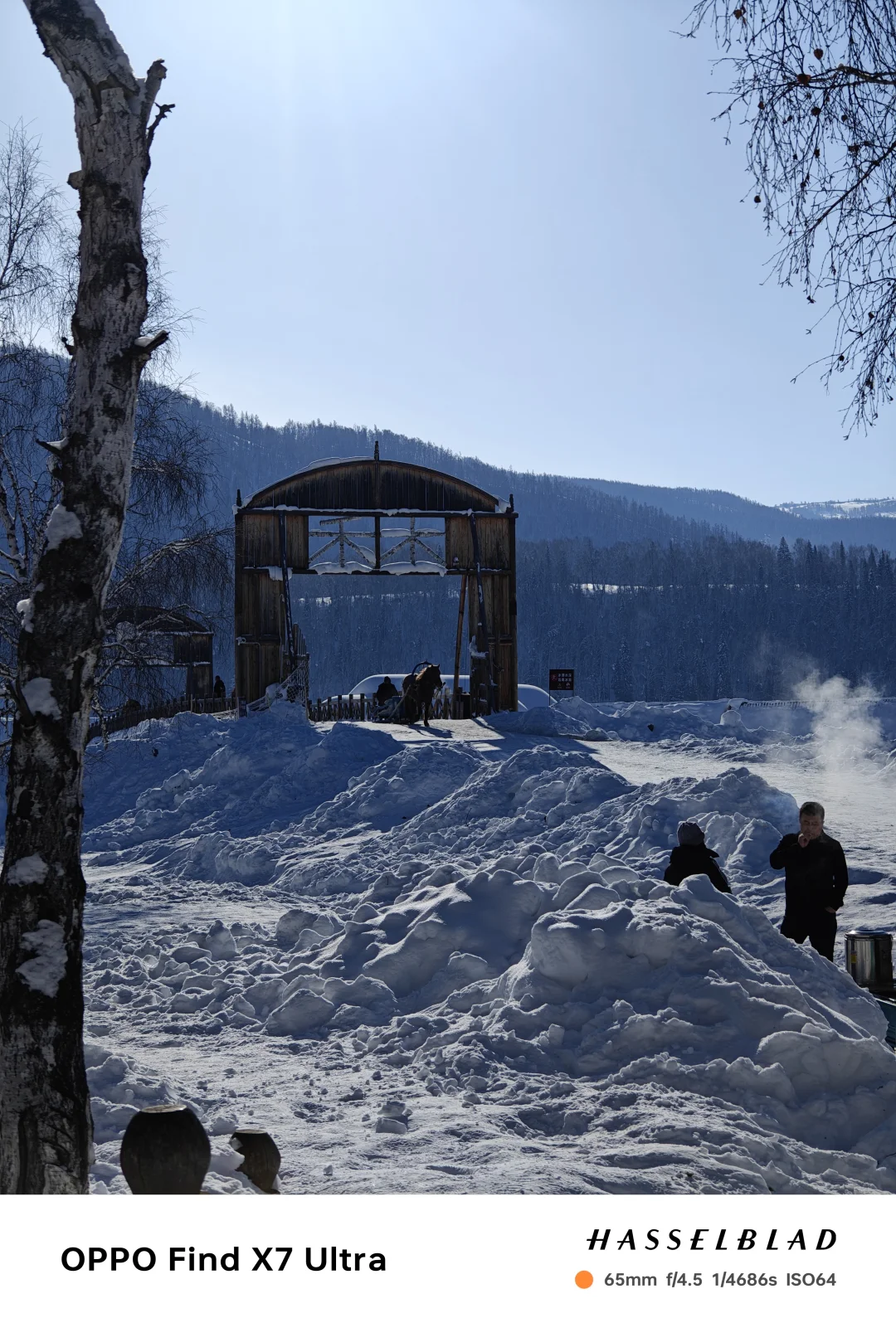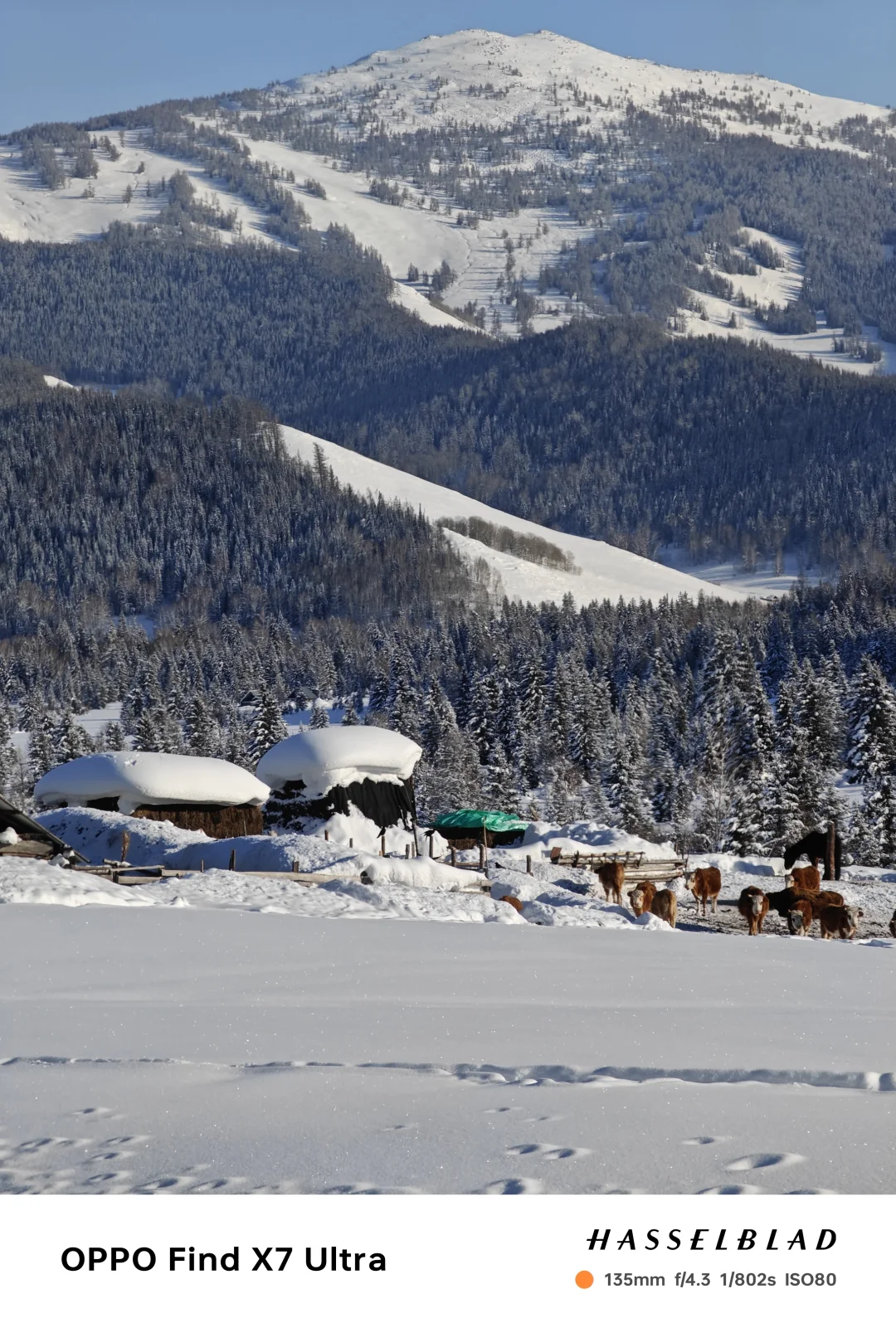 🔺禾木:哈登观景台俯瞰全村雪屋炊烟,禾木河畔的雪蘑菇和木屋太出片啦~ 可以体验马拉爬犁(80💰/人),记得避开X852早8点前和晚10点后的管制时段