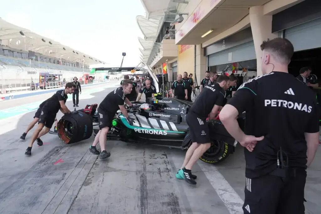 梅奔在P房里面换引擎,这三客户车队(迈凯伦、Alpine、威廉姆斯)在赛道上跑的是嘎嘎猛F1赛车2026F1季前测试