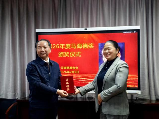 马海德基金会副理事长吴英到院为叶兴东院长颁发2026年度马海德奖,并转达名誉理事长周幼马同志的亲笔贺信。