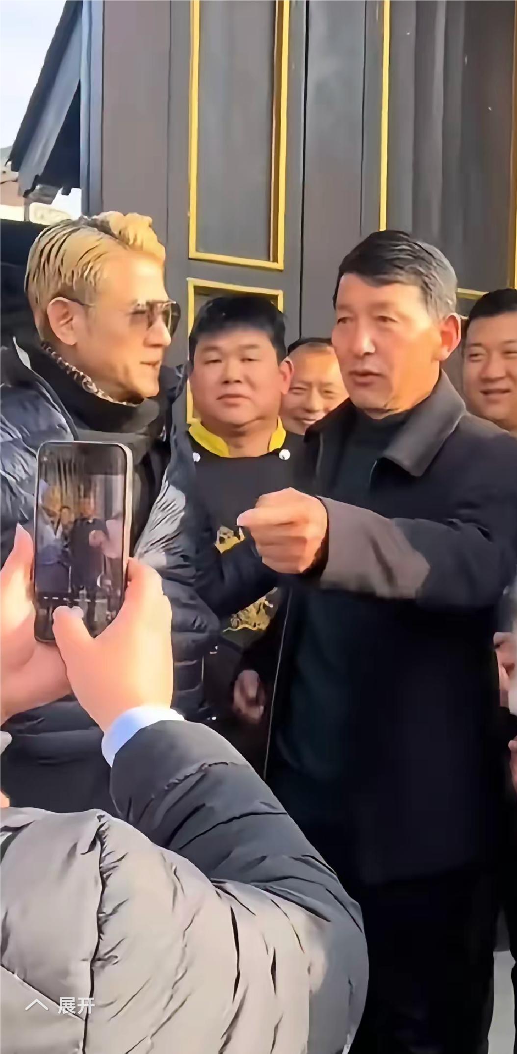 60岁的郭富城和58岁的岳父同框,两人相差两岁,可郭富城明显比岳父显年轻,郭富城打扮时尚,保养也好,皮肤状态也不错,岳父,就在穿着上就败给了郭富城,他穿着老年装,发型也是显老气,自然看着是比郭富城大点。