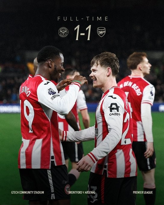 直播吧2月13日讯本轮英超焦点战,布伦特福德1-1战平阿森纳,延续了近期出色势头。